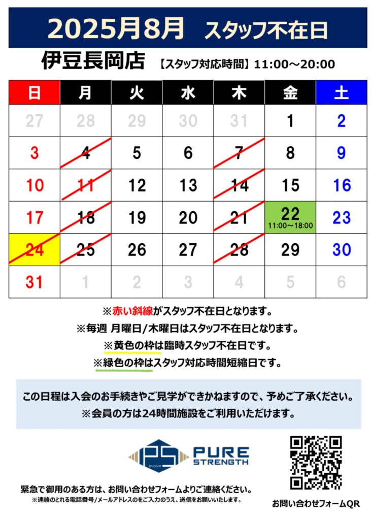 2025年8月のスタッフ不在日です。